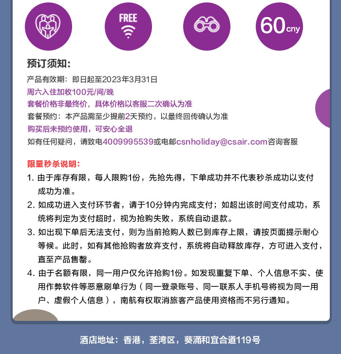 5. 如对本产品有疑问,请咨询客服csnholiday@csair.com或致电4009995539。