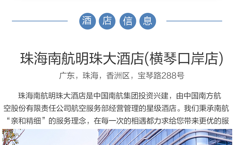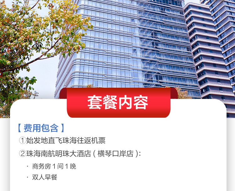 【玩美暑假】国内多地直飞珠海2-14天自由行(往返含税机票+1晚珠海南航明珠大酒店(横琴口岸店))