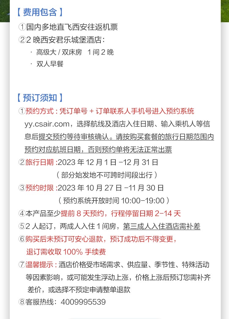 10.如对本产品有任何疑问,请咨询客服4009995539或发邮至csnholiday@csair.com。