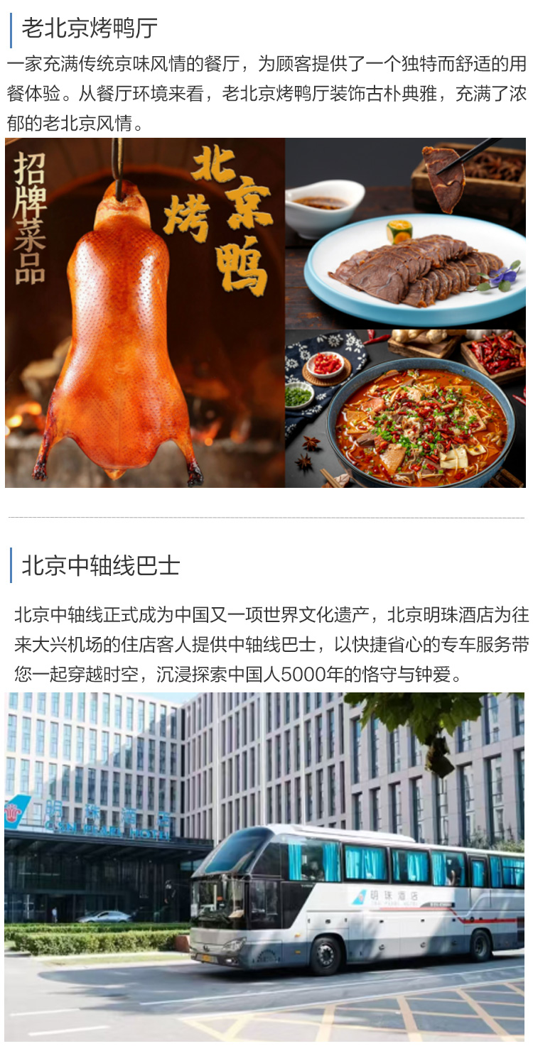 【酒店尊享套餐】北京明珠酒店1晚含老北京烤鸭套餐+北京市区中轴线巴士