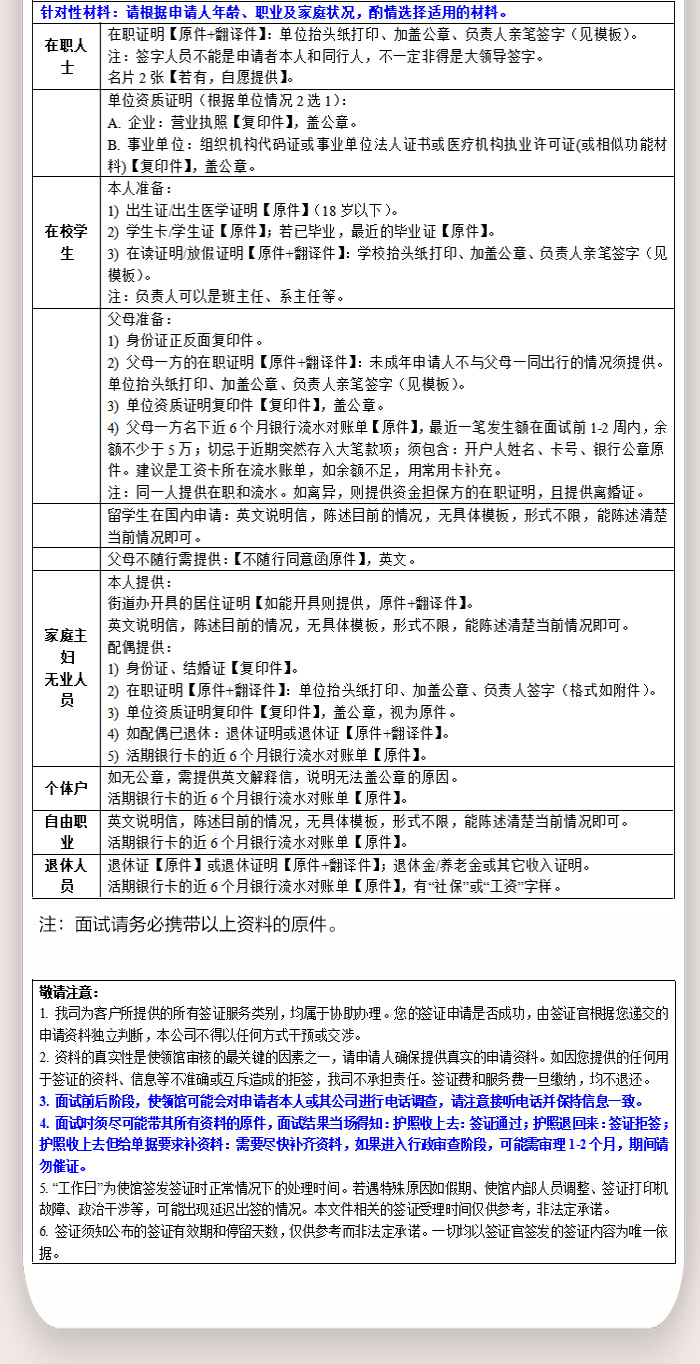 6. 您提供的材料必须真实可靠,使馆保留要求申请人补资料或要求申请人前往使馆面试的权利。