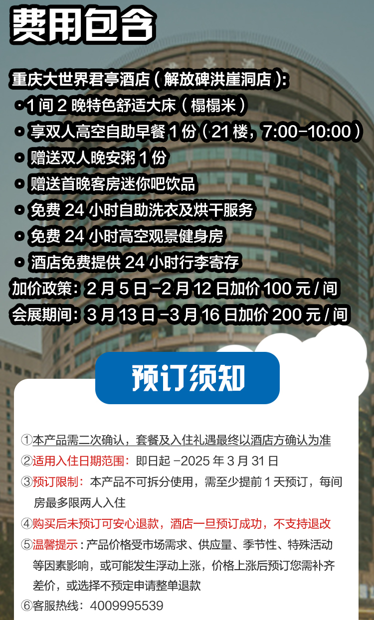 1. 本产品为酒店套餐,拍前建议咨询客服查询库存。下单后请尽快与客服电话预约,一经预订,不退不改。