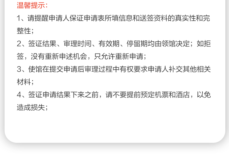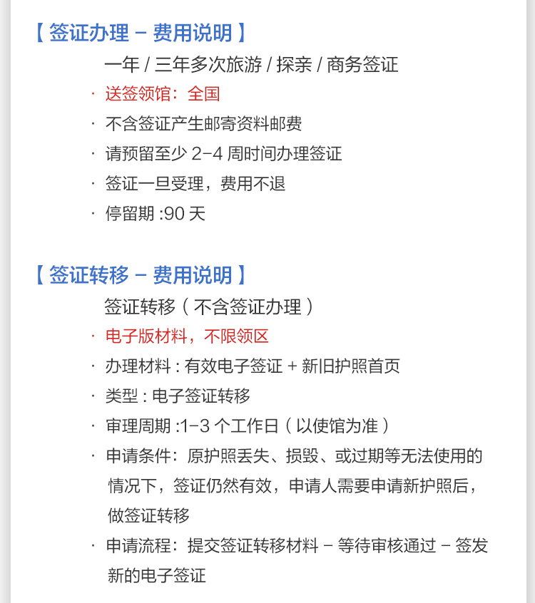 2. 签证一旦受理,费用不可退还。