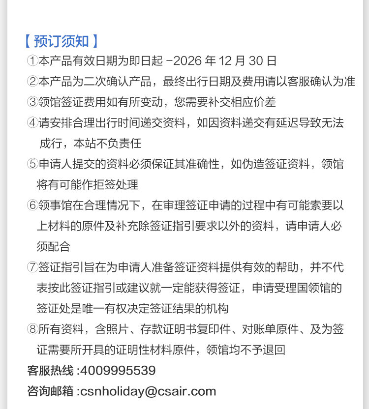 11. 如对本产品有疑问,请咨询客服csnholiday@csair.com。
