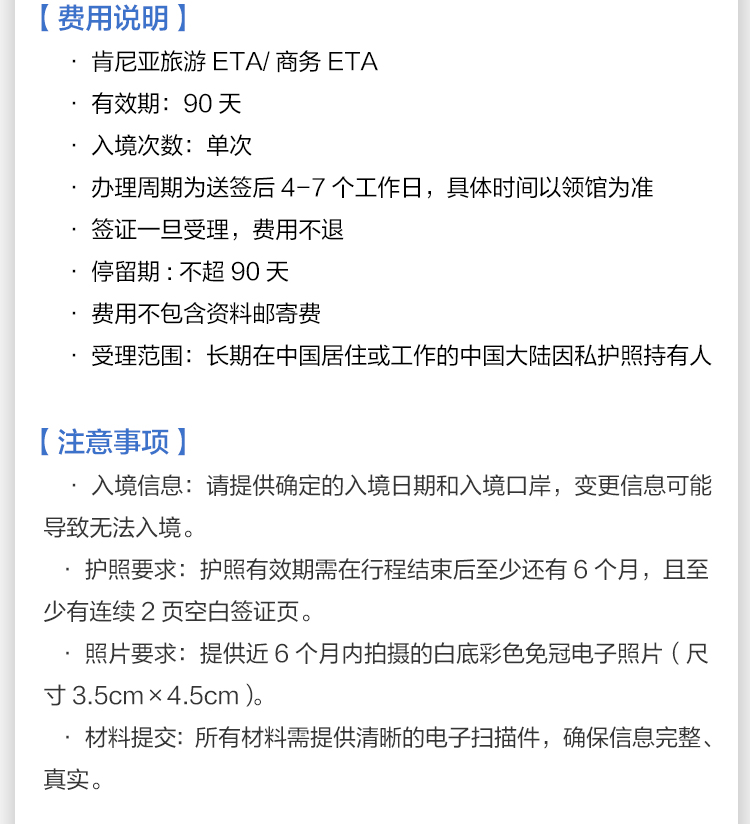 1)本产品需二次确认,预订流程如下:提交订单—>完成支付—>签证工作人员外呼旅客二次确认订单内容及价格—>订单经双方确认后成立。签证一旦受理,费用不可退还。