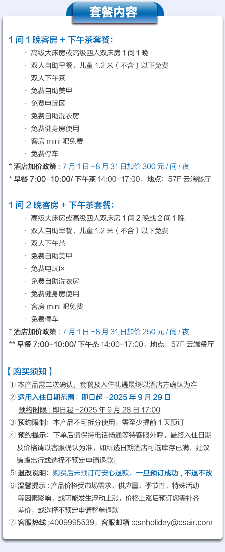9. 如对本产品有疑问,请咨询客服csnholiday@csair.com或致电4009995539。