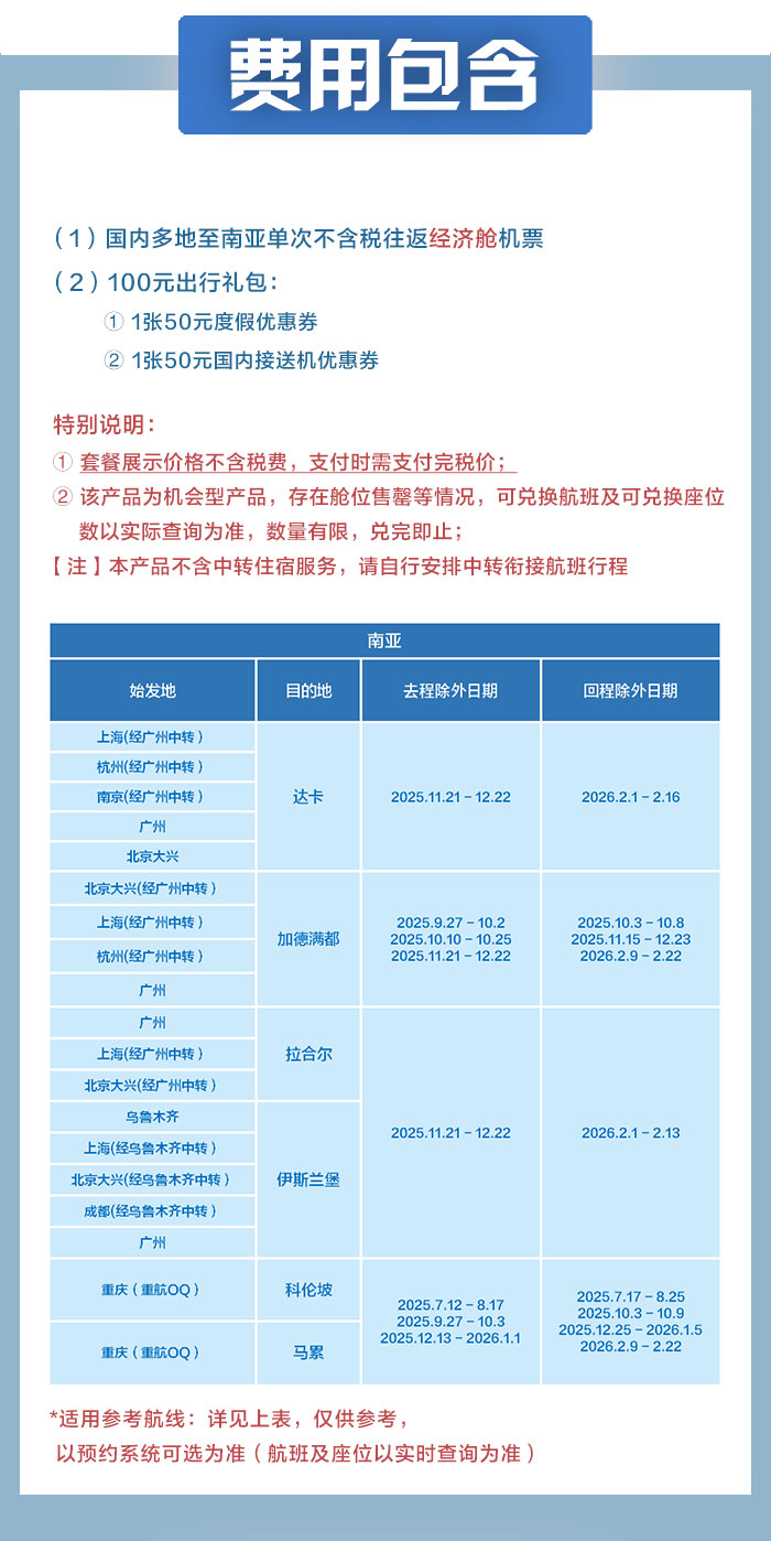 去程日期:即日起-2026年1月31日(除外日期详见页面)