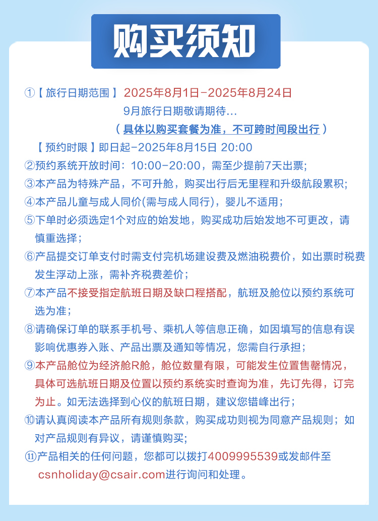 【预约时限】即日起-2025年8月15日(10:00-20:00),在预约时限内至少提前7天出票,未预约可退