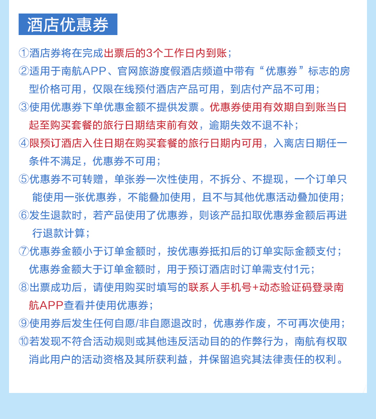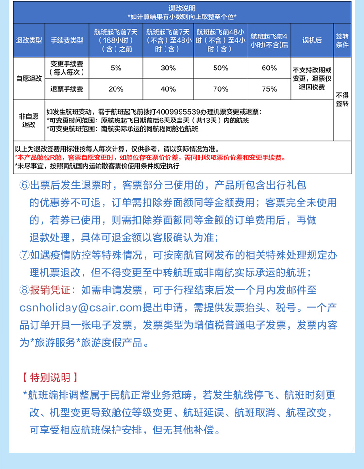 3、购买前请注意机票去回程退改签规则,最终以南航规定为准,国际往返机票单段使用后不得退票,多程联运不得跳段使用。