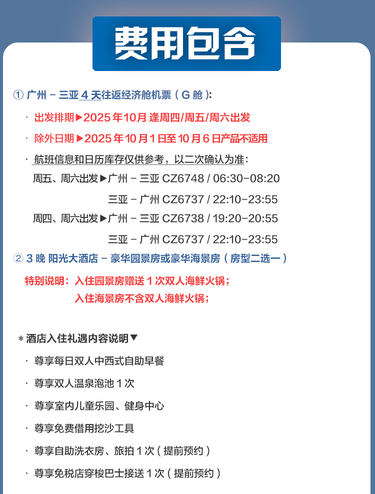 【三亚自由行】广州直飞三亚4天自由行(往返含税机票+3晚三亚阳光大酒店)