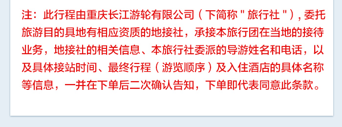 5. 您游览的沿线旅游景点均有出售各种工艺品、旅游纪念品,船方不建议购买,如发生纠纷船方将不承担责任。