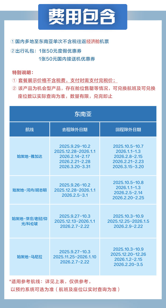 旅行日期范围:即日起-2026年3月31日(除外日期详见页面)