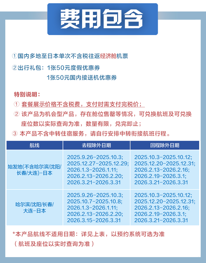 旅行日期范围:即日起-2026年3月31日(除外日期详见页面);