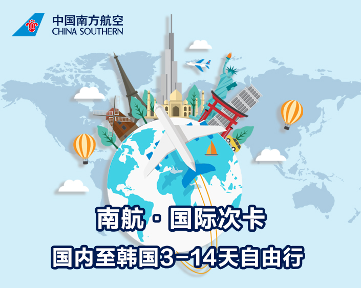 【国际次卡】国内至韩国单次往返经济舱机票(享价值100元出行礼包)