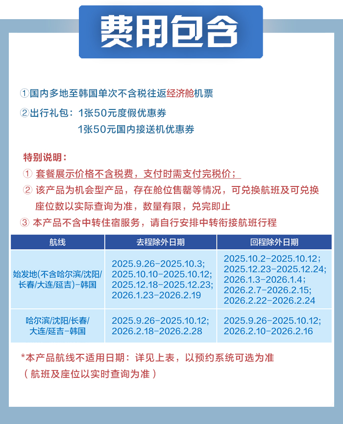 旅行日期范围:即日起-2026年3月31日(除外日期详见页面);