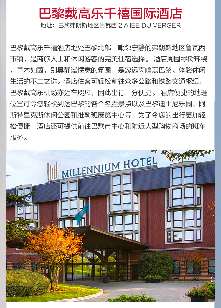 【与世界相遇-秋冬】国内多地至巴黎5-21天自由行(往返含税经济舱机票+1晚巴黎戴高乐千禧国际酒店)