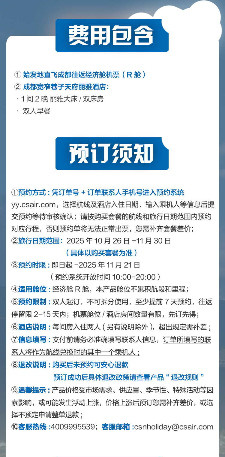 10. 如对本产品有任何疑问,请咨询客服4009995539或发邮至csnholiday@csair.com。