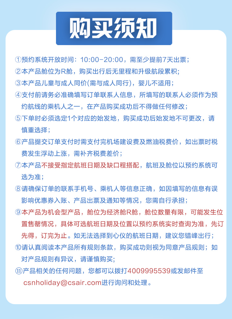 3、购买前请注意机票去回程退改签规则,最终以南航规定为准,国际往返机票单段使用后不得退票,多程联运不得跳段使用。