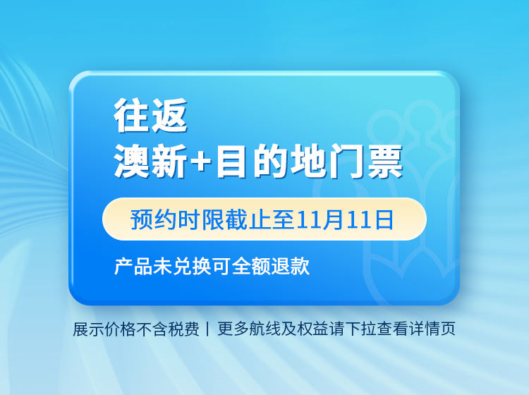 【国际早鸟】国内多地至澳新5-21天自由行(往返经济舱机票+1份目的地门票)