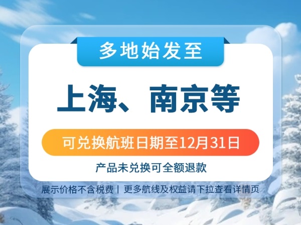 【华东次卡】2-15天自由行(往返机票+1份出行礼包)