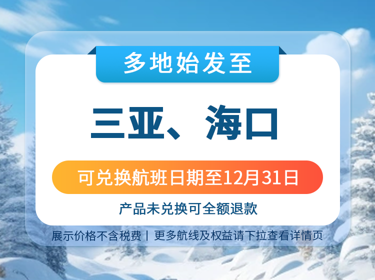 【海南次卡】2-15天自由行(往返机票+1份出行礼包)