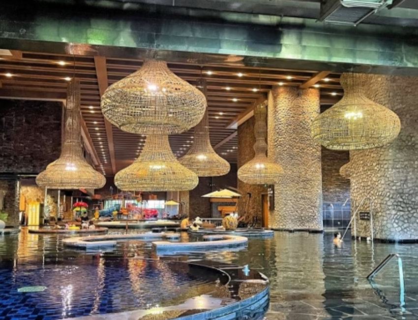 2. 取票入园:凭「短信券码」到温泉大堂自助验票机/购票中心验票换纸质票后入园