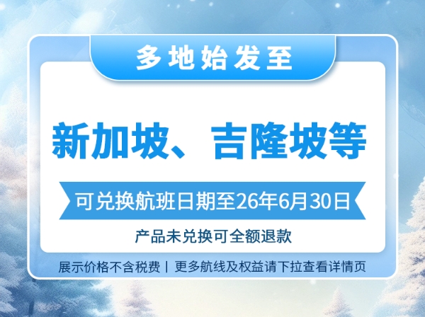 【畅游新马泰】国内多地至新马泰单次往返经济舱机票(享100元出行礼包)