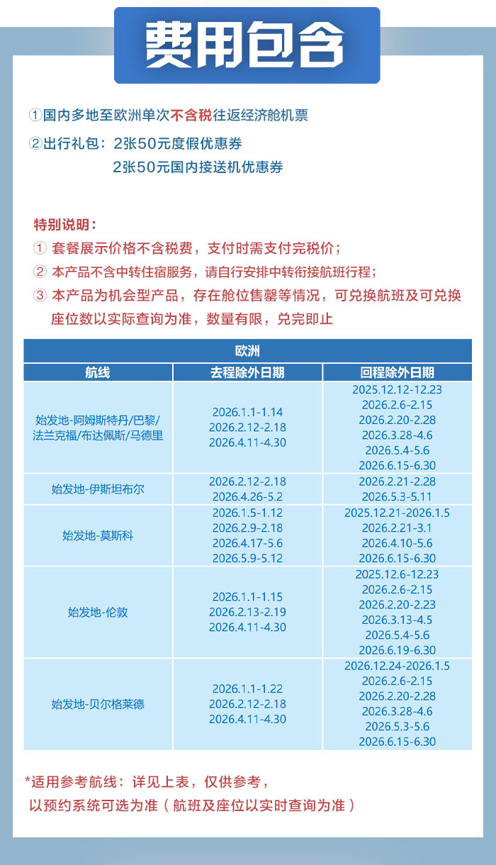 旅行日期范围:即日起-2026年6月30日(除外日期详见页面);