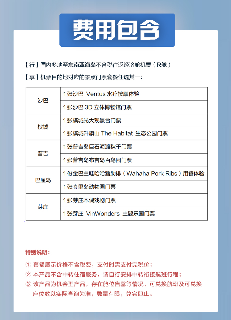 4. 本产品支付价格已含机建燃油税,受国际航空油价、燃油附加费等政策影响,购买后出票时如发生燃油费上涨需补齐差价。