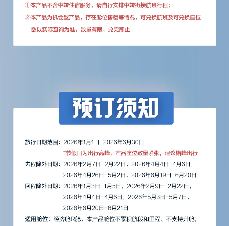 旅行日期范围:2026年1月1日-6月30日(除外日期详见页面)