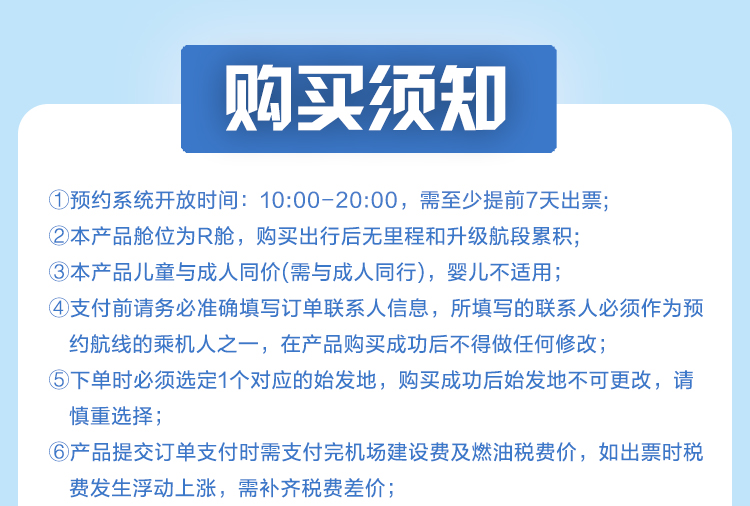 4. 请您在购买产品时填写正确的旅客信息及联系信息,如因您提供的信息有误,导致客票不能成行或无法接收航班变动信息等情况,本站不承担任何责任。