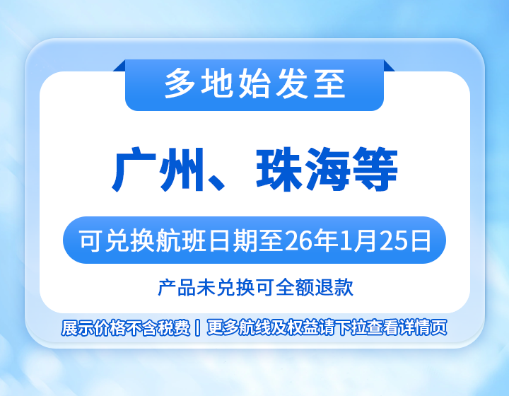 【大湾区单程次卡】国内多地直飞大湾区自由行(单程机票+1份出行礼包)