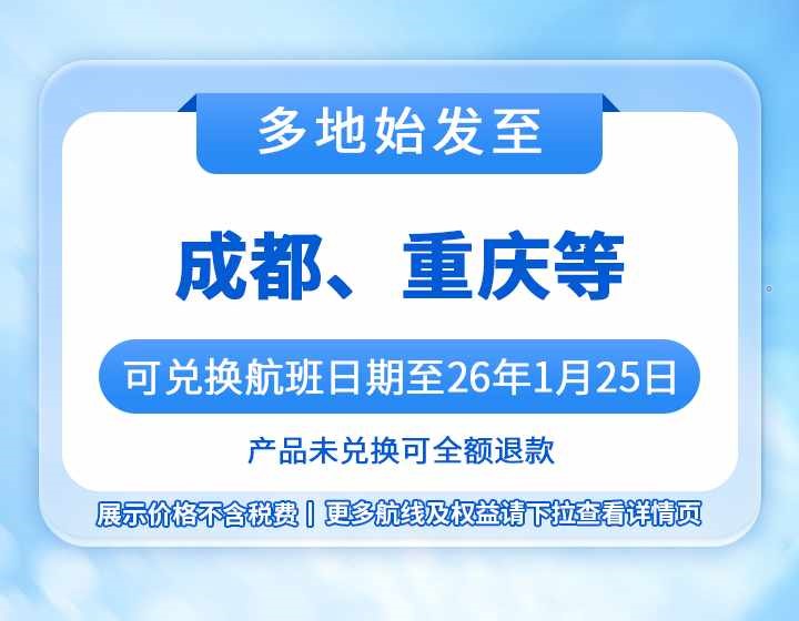 【西南单程次卡】国内多地直飞西南自由行(单程机票+1份出行礼包)