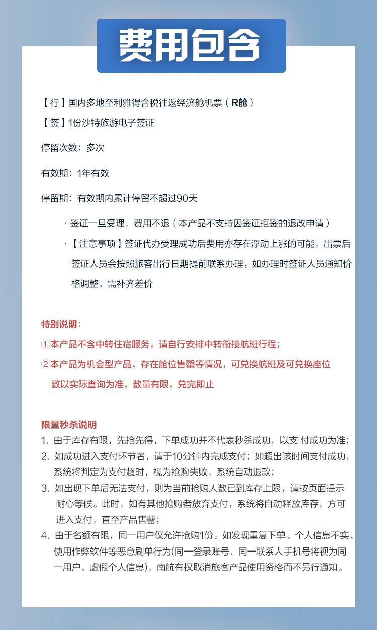 【限量直减400元】国内多地至利雅得5-21天自由行(往返含税经济舱机票+1份沙特旅游电子签证)