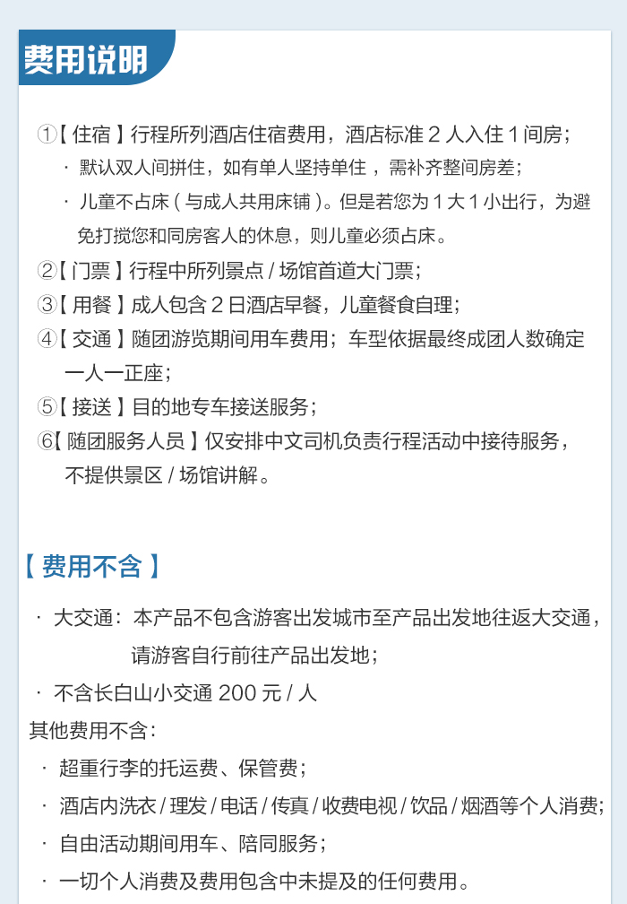 2. 本产品2人起订,2人成团,下单后需等待拼团。请至少提前10天预订,行程需二次确认,预订结果以预订成功短信为准。