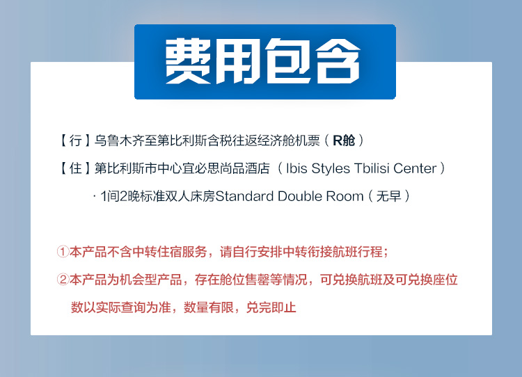 【与世界相遇-初春】乌鲁木齐至第比利斯3-14天自由行(往返含税经济舱机票+2晚第比利斯市中心宜必思尚品酒店)